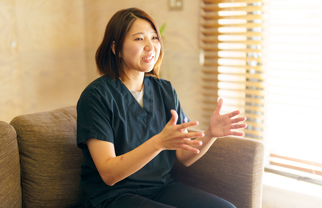私は大学時代、臨床系の研究室ではなかったこともあり、診療に関してはほとんど何もわからない状態でこの病院に入りました。最初の頃は自信が持てず、頼りない自分に落ち込むこともありましたが、そんな私を先輩方は根気強く指導してくださり、看護師さんたちもいつも励まし、支えてくれました。